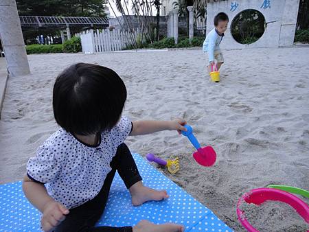 在芸芸玩沙的過程...一直有一個小哥哥在附近玩...