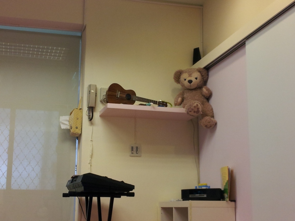 教室的一角...有老師上課會用到的烏克麗麗還有電子琴...當然也有音響囉...