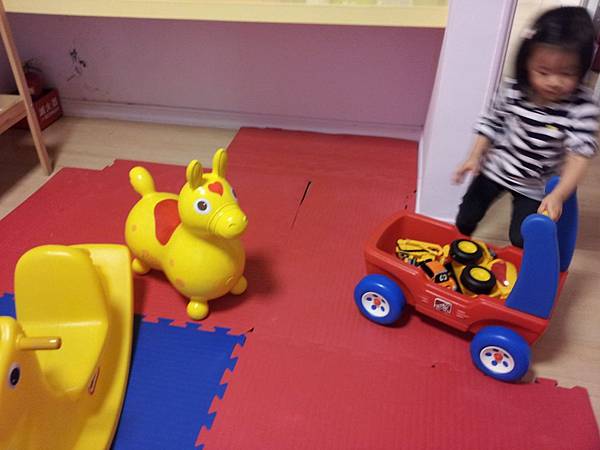 遊戲室內有跳跳馬...搖搖馬...寶寶推車...