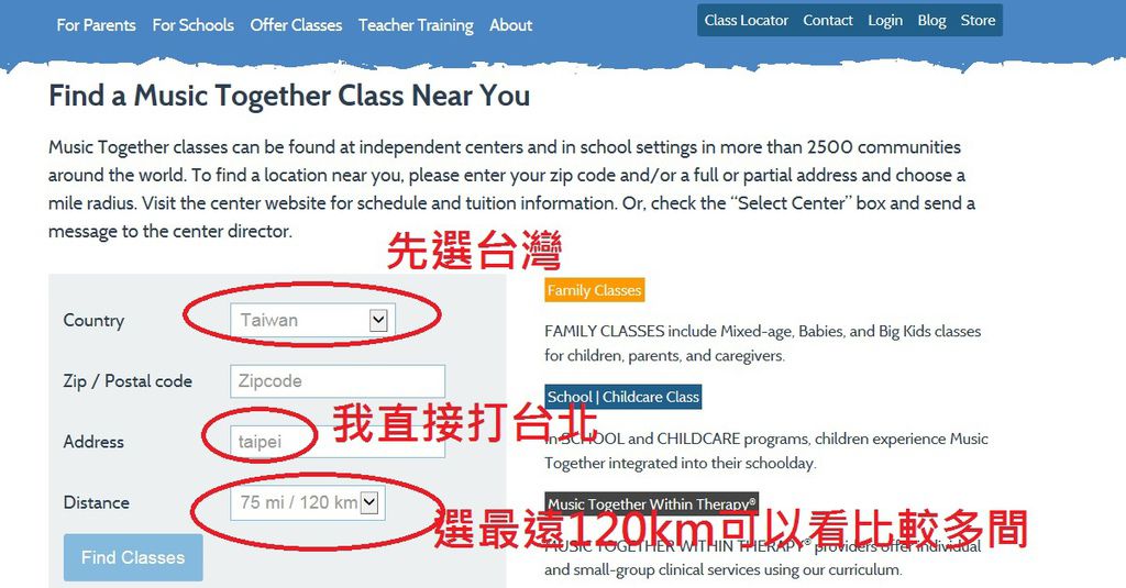 啊如果你不在台北...如何找到離家最近的music together的課程咧??