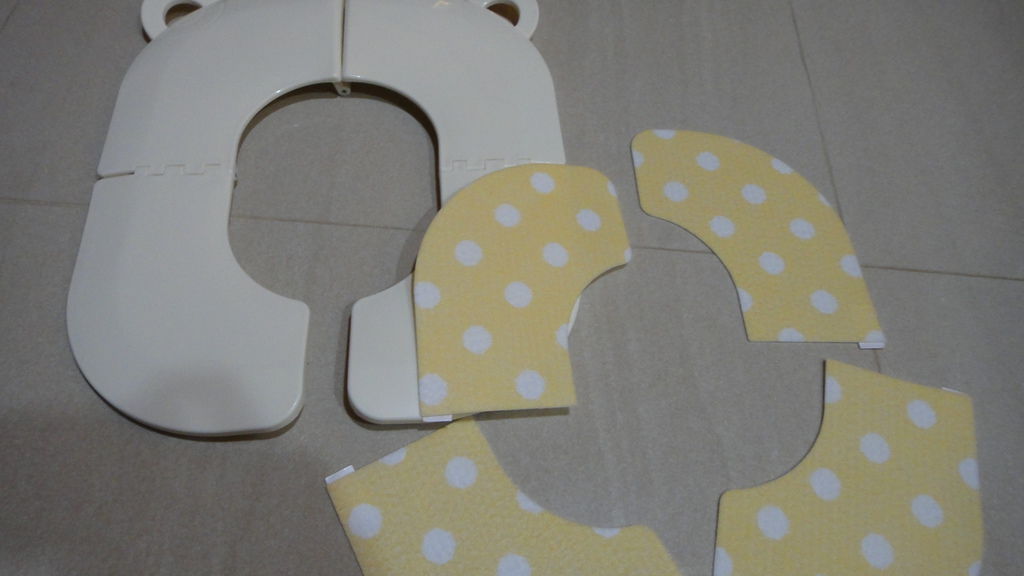 米白色那個就是TOMA‧TOMA折疊馬桶圈...比起來...媽媽包馬上又多出一點空間...