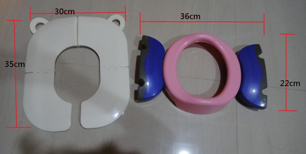 粉紅色的是Kalencom Potette Plus二合一可攜式小馬桶...其實已經算小的了...