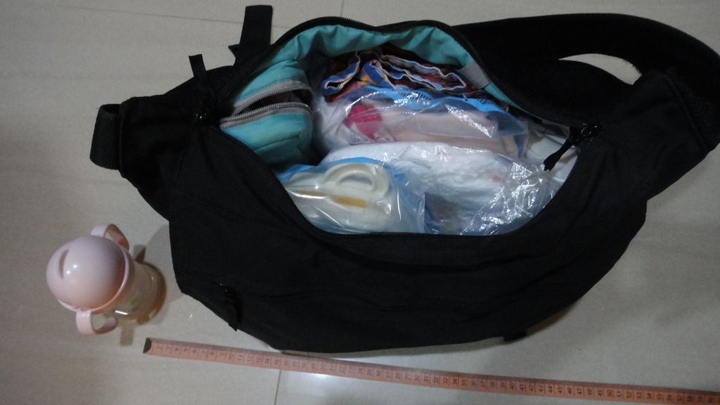 折起來其實有點大...因為我如果單獨帶芸芸出門...會希望"媽媽包"越瘦越好...