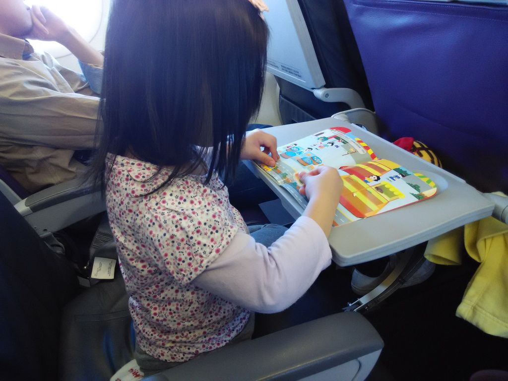 飛行中我給她貼紙書玩...她都滿乖的...