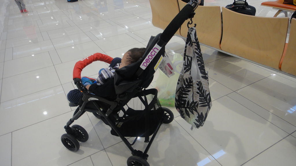 所以推車被貼上"托運行李貼紙"...