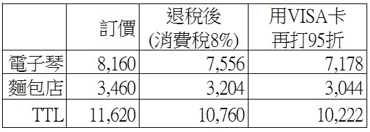 兩台加起來...8160+3460=11620yen...達到可以退稅的標準(要超過10801yen)...