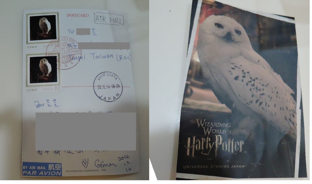 下圖就是我在台北收到的明信片...貓頭鷹郵戳就是活米村蓋的...