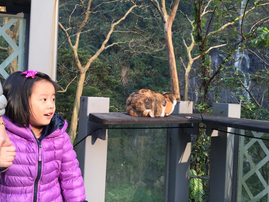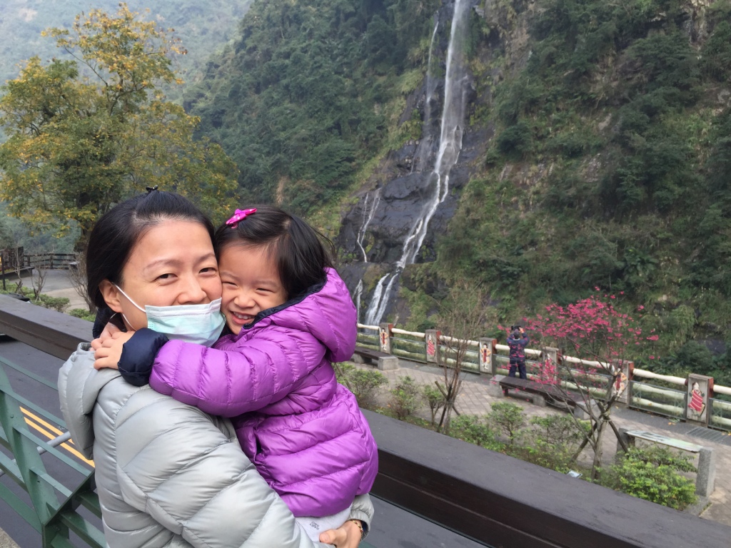 一下車就可以看到壯觀的瀑布...芸芸第一次看到這麼大的瀑布...她覺得非常好奇...一直問我為什麼有水從上面的洞流下來...