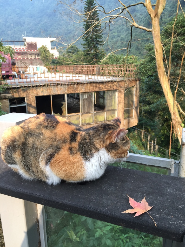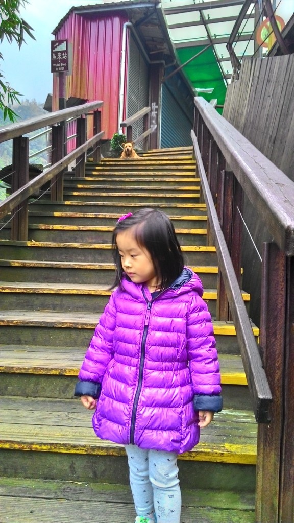 烏來站往下走是木頭階梯...有一隻黃狗坐在上面發呆^^... (都是階梯...所以推車上不來囉...)