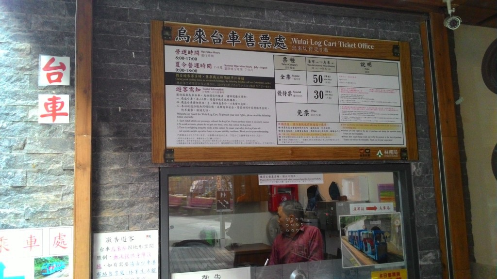 接著我打算和芸芸坐台車回到台車烏來站(芸爸開車下去會合)...售票處就在旁邊...芸芸未滿7歲不用買票...所以只需買我的1張NT50..