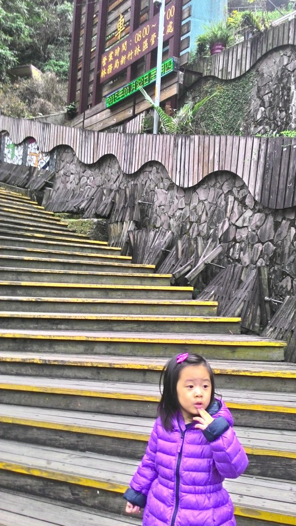 到階梯最下面了...只須走2分鐘啦...芸芸正在問我"爸比咧??"...