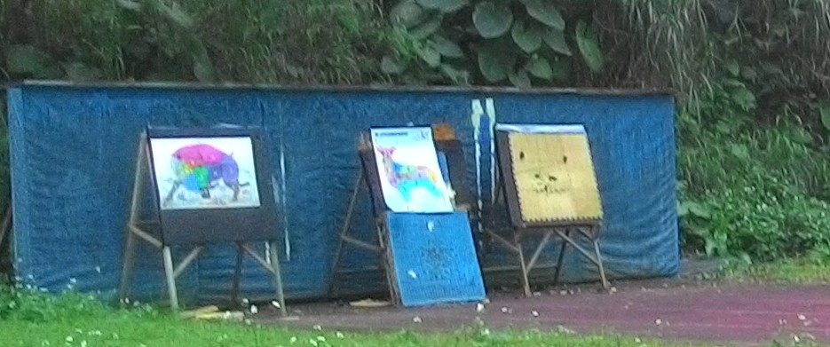 手機拍的粉糊...看起來圖案是山豬和鹿...還彩色的...