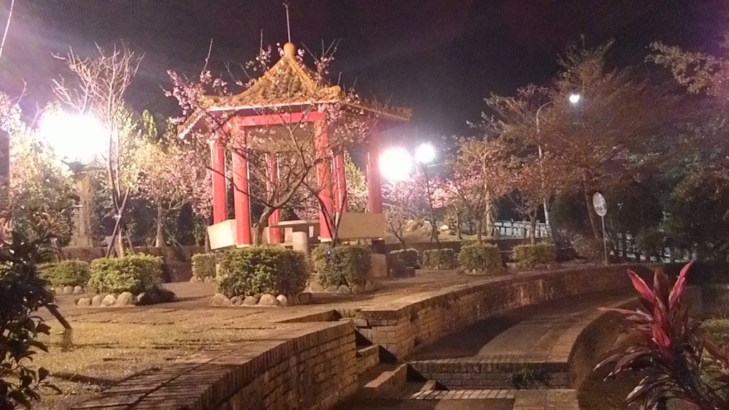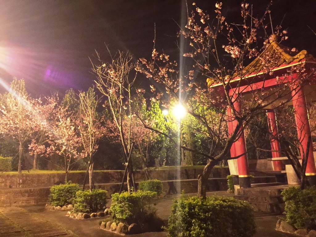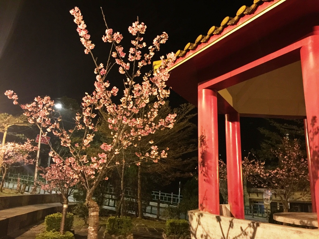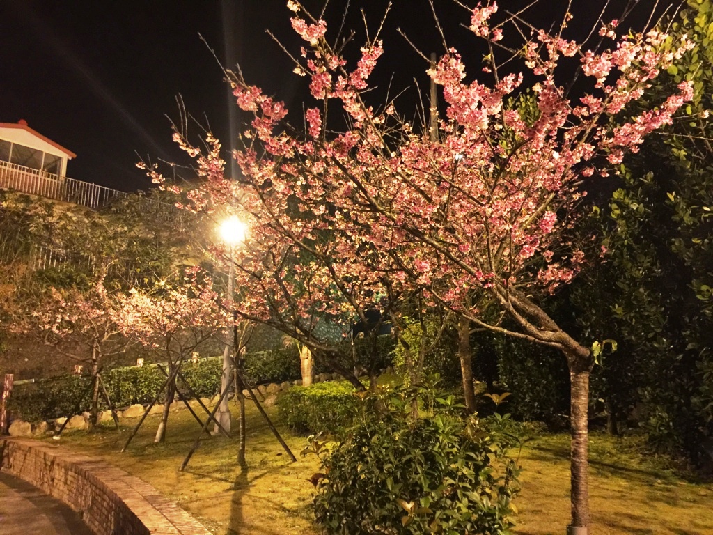 離開雲頂已經晚上快要8點了...回程車子開到新烏路二段時...看到一個很美的公園...有10來棵櫻花樹盛開...