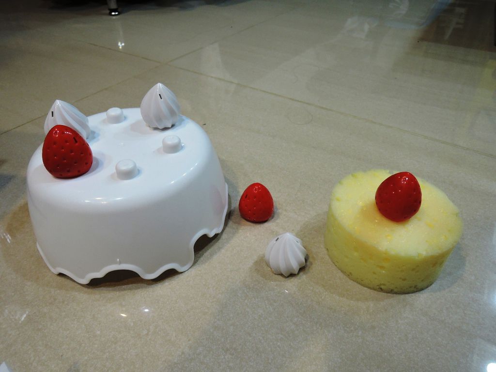 蛋糕上面的草莓粒和奶油球.都可以分別拆下來...至於黃色的洗澡海綿,也是一個小蛋糕體喔(像海綿蛋糕一樣)...小朋友可以把泡泡奶油抹上去...