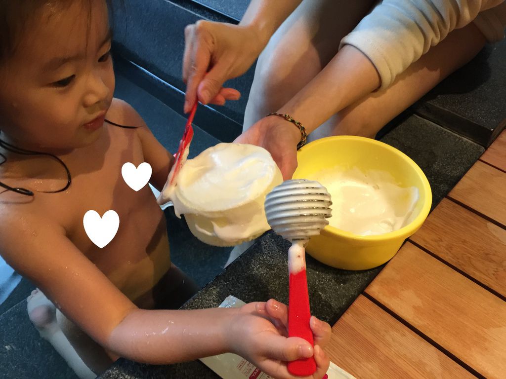 今天來介紹這個好玩的洗澡玩具...可以用沐浴乳做蛋糕耶...
