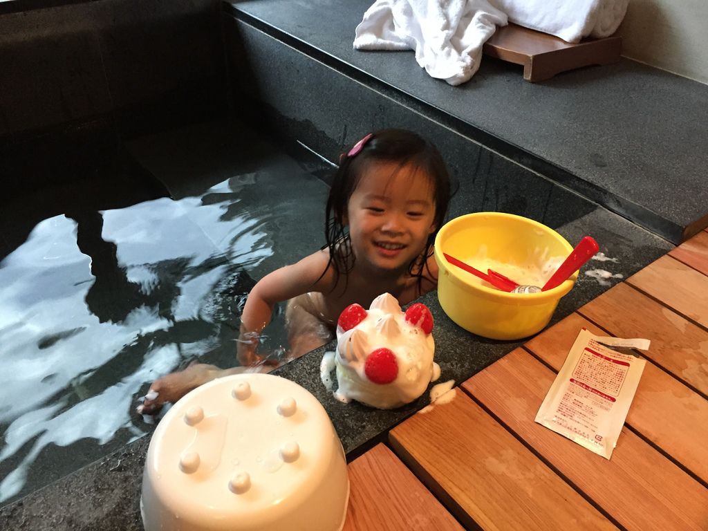 這陣子天氣冷...我們有帶芸芸去烏來泡湯...所以就帶了這組洗澡玩具去玩...直接在湯屋裡面"開箱"XD...