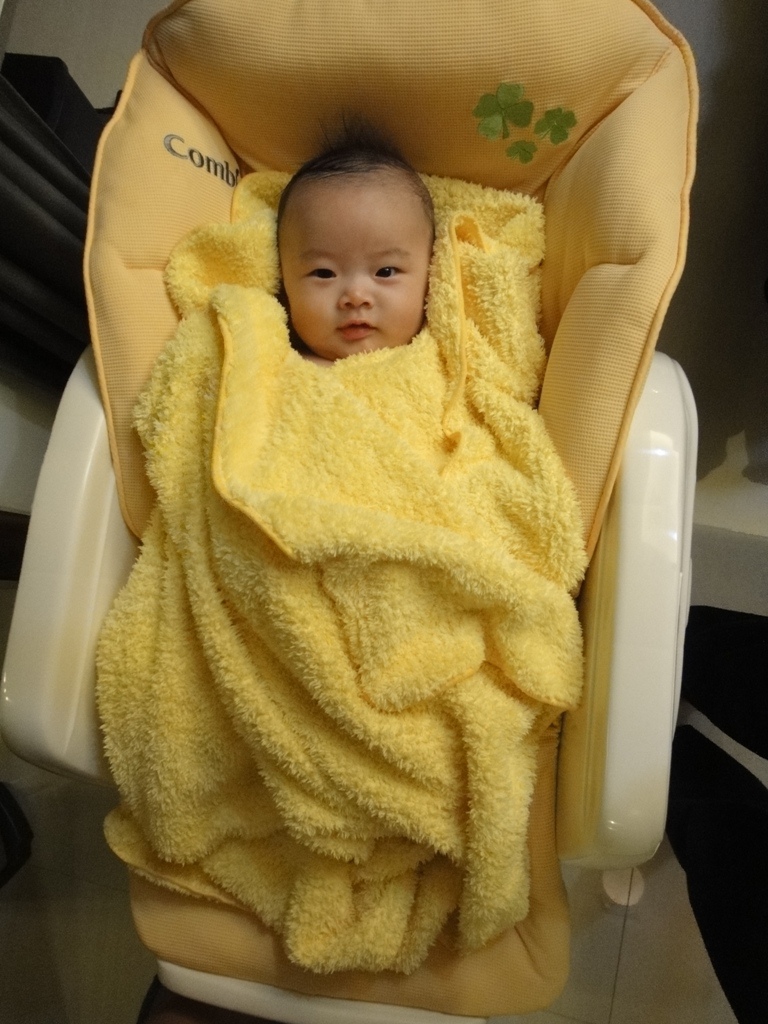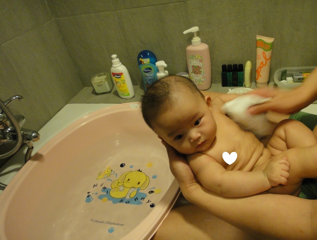 嘿嘿...時光回到芸芸5個月大的時候...芸爸是這樣幫她洗的...