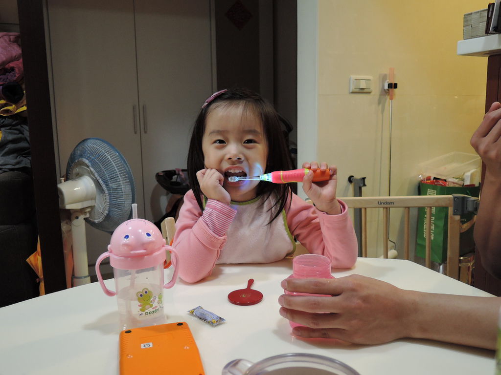 原則上用電動牙刷的時候...我們都是由大人幫芸芸刷牙...