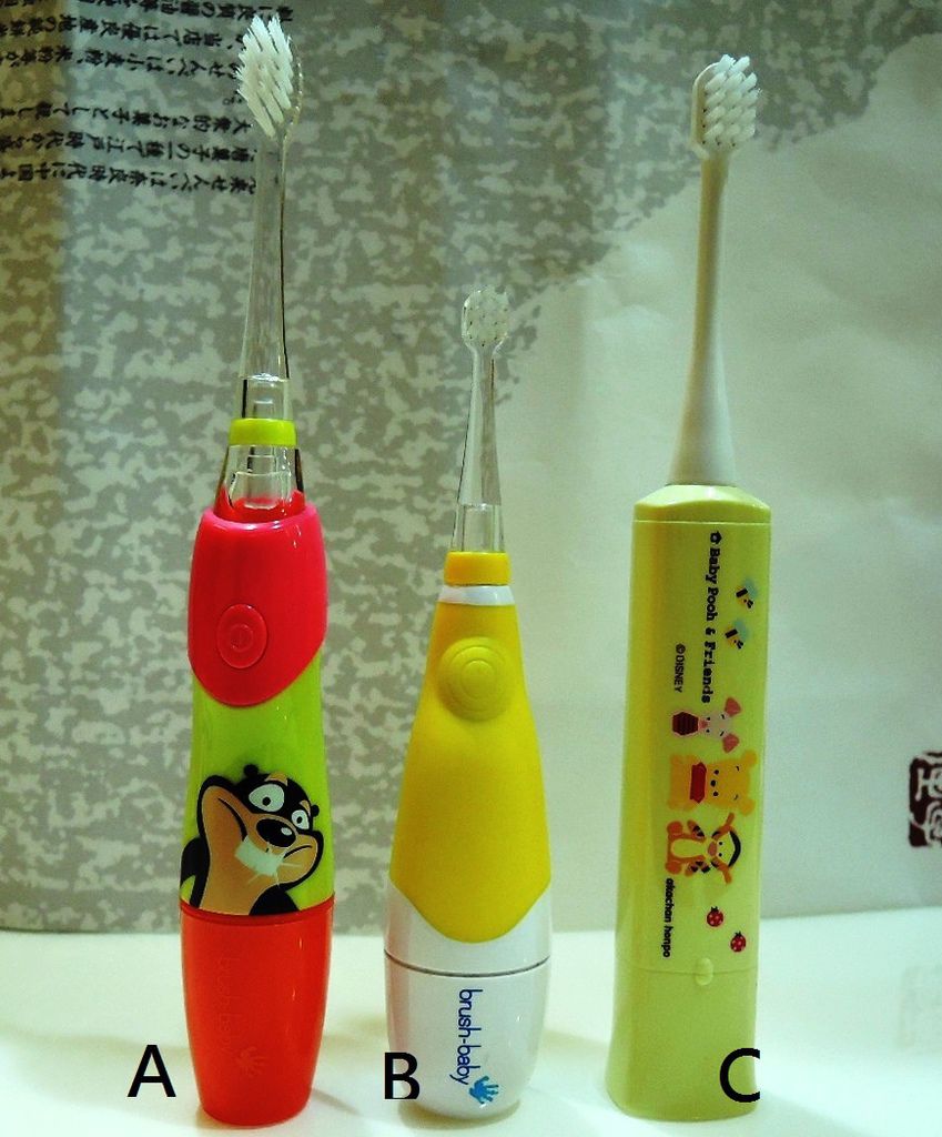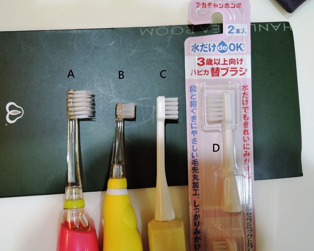 只有B的刷頭才是真正適合小小的乳齒的尺寸...也比較容易刷到最裡面的牙齒...