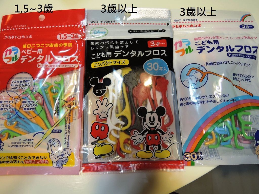 去年底我們到大阪旅遊,我在阿卡將買了許多兒童牙線棒...發現3歲以上用的牙線棒...尺寸大了許多...