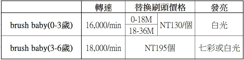 其中的[brush-baby嬰幼兒聲波電動牙刷]真是相見恨晚...原本我們一開始是用阿卡將(4000轉/min)的電動牙刷...