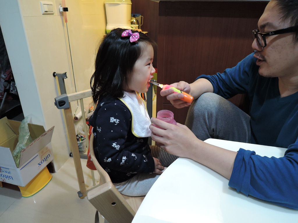 刷完之後...我們大人再幫她刷一遍...