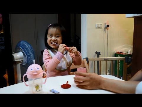 來看看芸芸初次使用七彩閃光電動牙刷的模樣...真的成功吸引孩子目光...