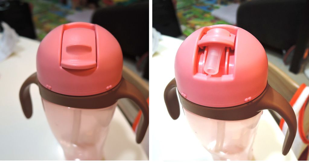 但這個推片很小...超難推...連我大人來推...都覺得費力...而且超容易因為推開推片而摸到吸管(這樣吸管就髒了><)...