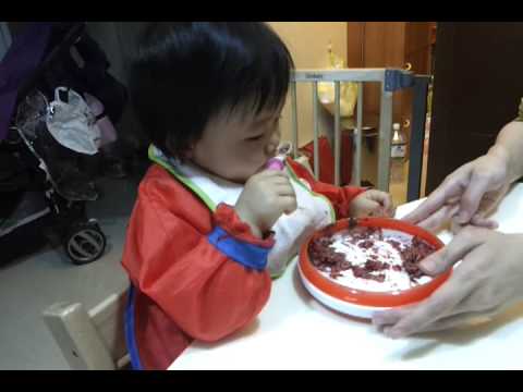 下面是芸芸剛學會吃飯時的影片...OXO的餐盤...因為邊邊是倒勾回來...所以很容易挖到食物...