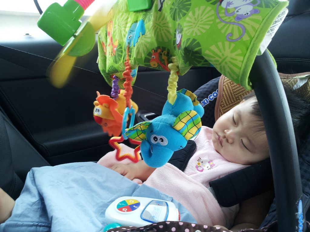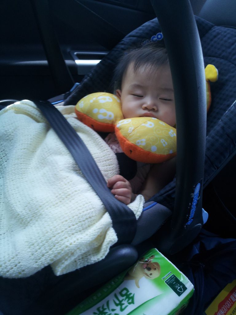 下圖是芸芸1歲大的時候...在車上睡覺...沒有頸枕...頭歪歪的...