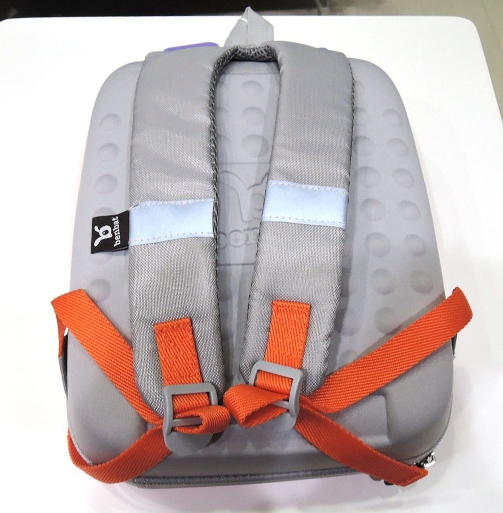 肩背帶有反光材質,可以增加安全性;與背部接觸那面有作凹凸圖案,這樣背部比較通風...