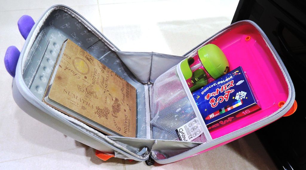 打開容量不小...我放了(一個水壺 + 一盒蠟筆 + 一本筆記本)...空間還是綽綽有餘...