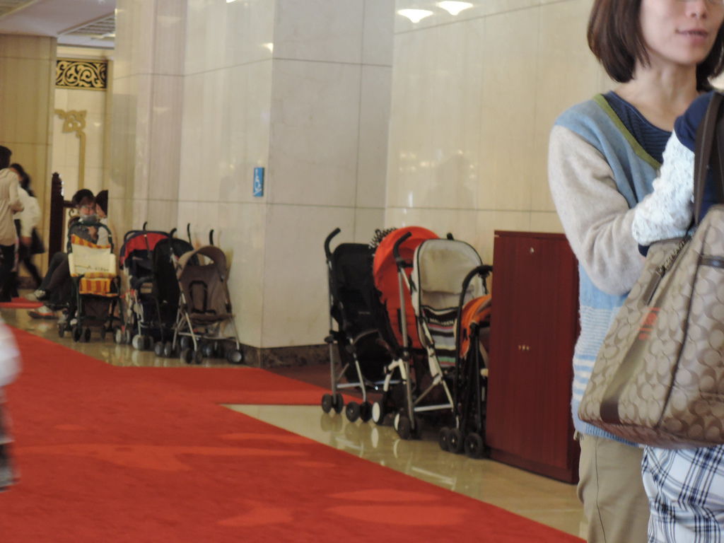 有帶推車的家長們...這時候可以先去寄放推車...(我們今天沒帶...)