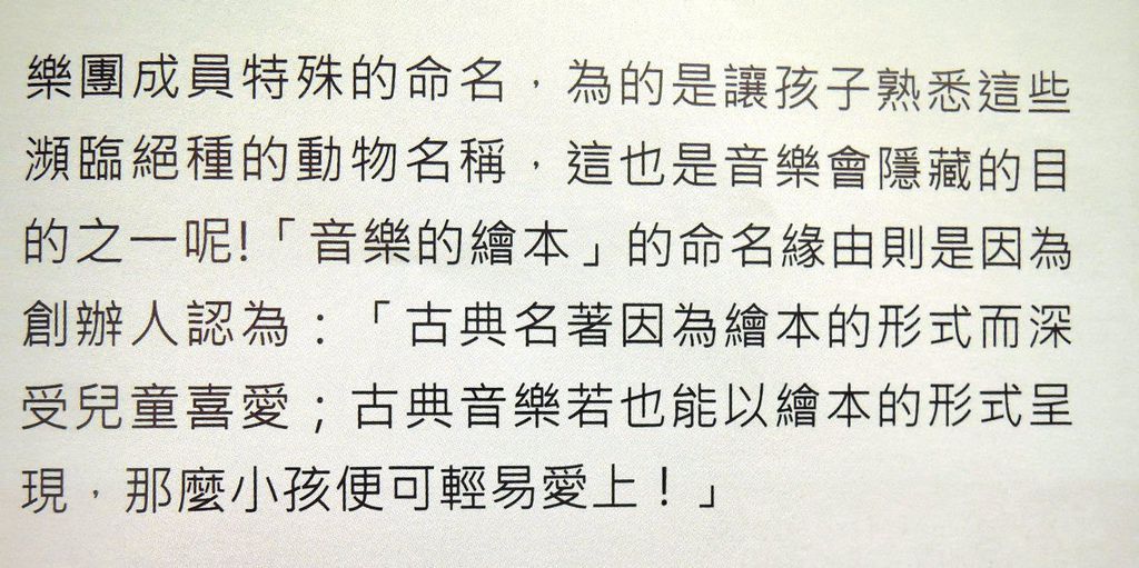 為演奏家們戴上動物頭套...讓音樂呈現繪本的效果...其實也很好理解啦...畢竟[巧虎]也是類似的概念...