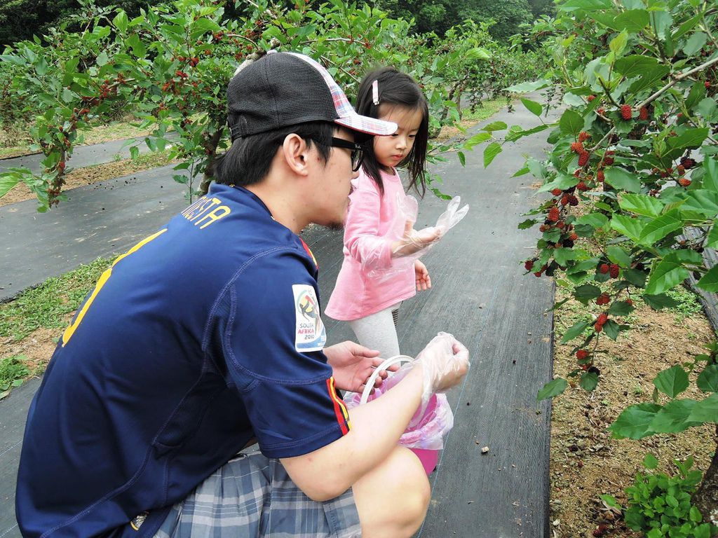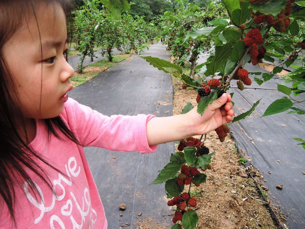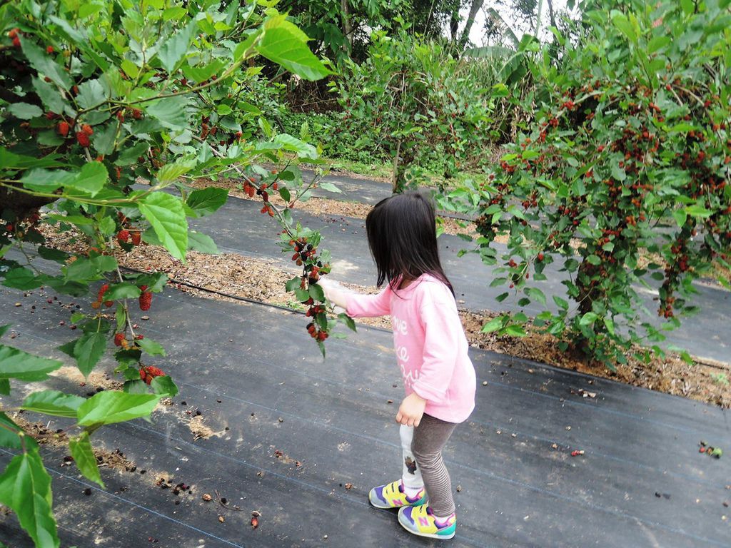 小朋友可以看到水果尚未採收時的模樣...享受採果樂趣...真是一舉數得...所以這次也找了採果難度很低的桑葚來體驗一下...