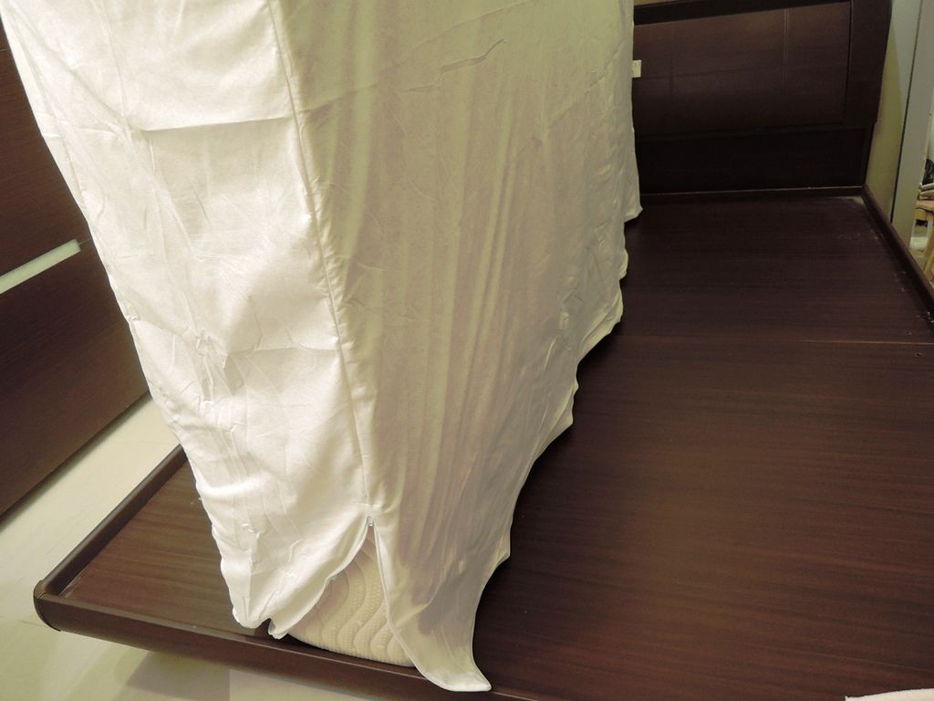 套上床包...這是全罩式的喔...不管大家選哪一個品牌的防蟎寢具...都請務必選擇全罩式的...