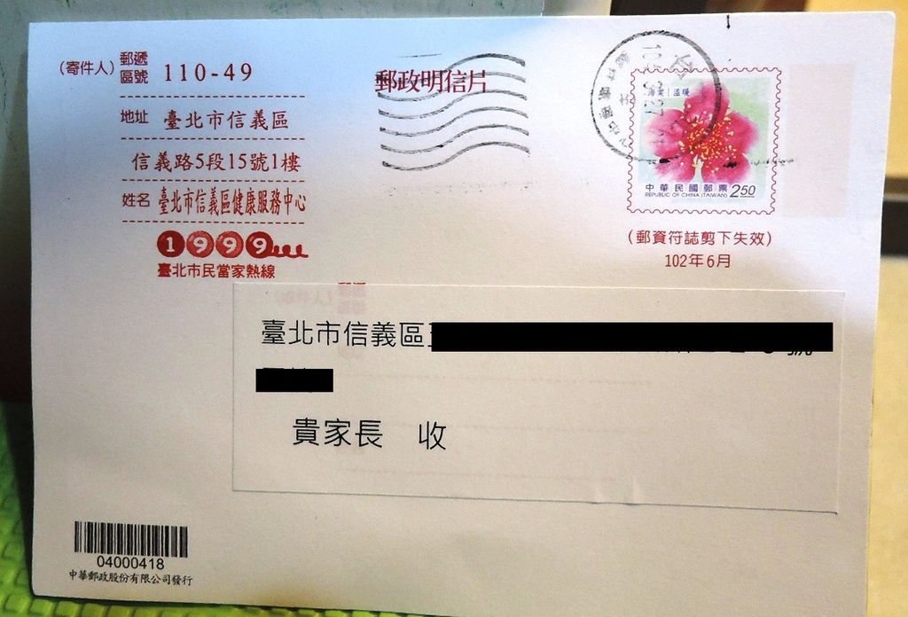 大約在今年3月底的時候...我收到區健康中心寄來的明信片...