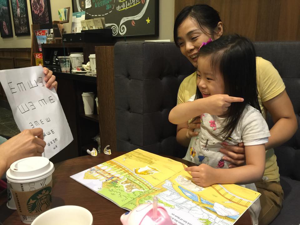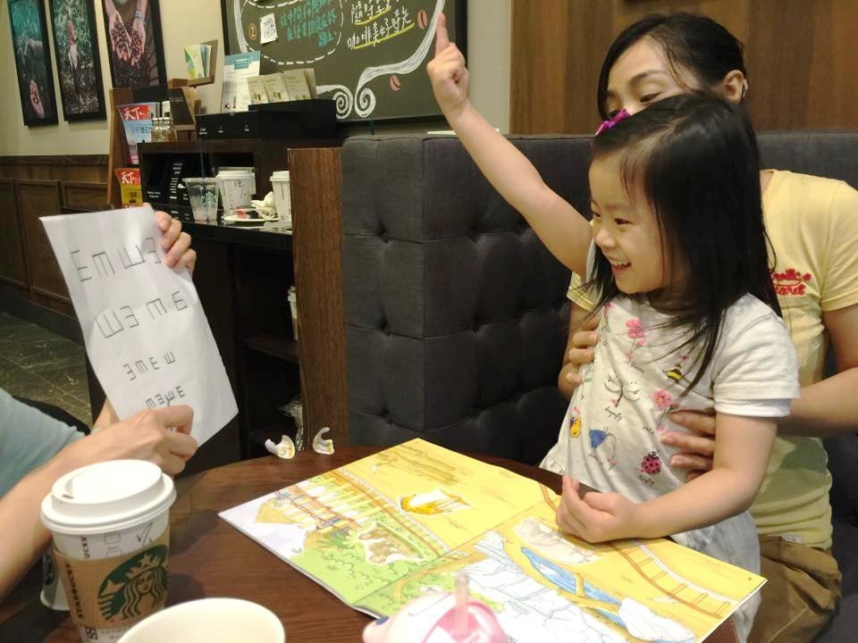 所以某天我就和芸芸乾媽在咖啡廳[訓練]芸芸...我自己用白紙亂畫一堆[E]...再請芸芸指出缺口...