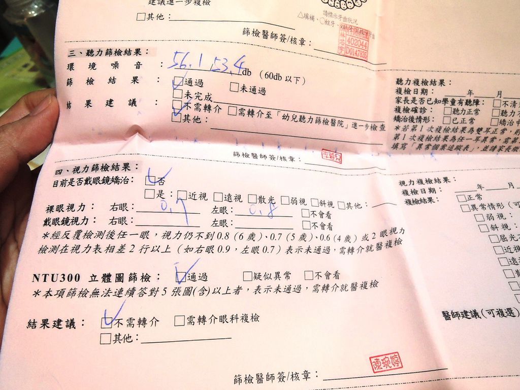 好啦...這就是芸芸的[免付費學齡前兒童健康篩檢紀錄]...芸芸費了一番工夫才通過...提供給大家參考囉...
