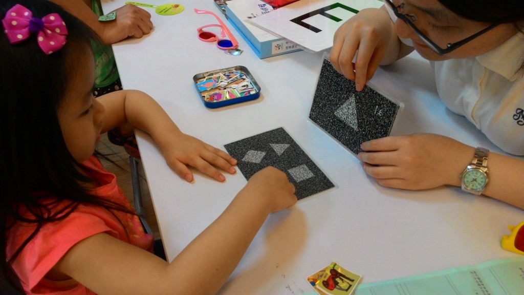 首先要確認孩子可以認圖形...然後孩子要可以看出浮起來的圖案...要看出圖案必須很專注...