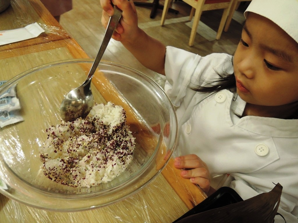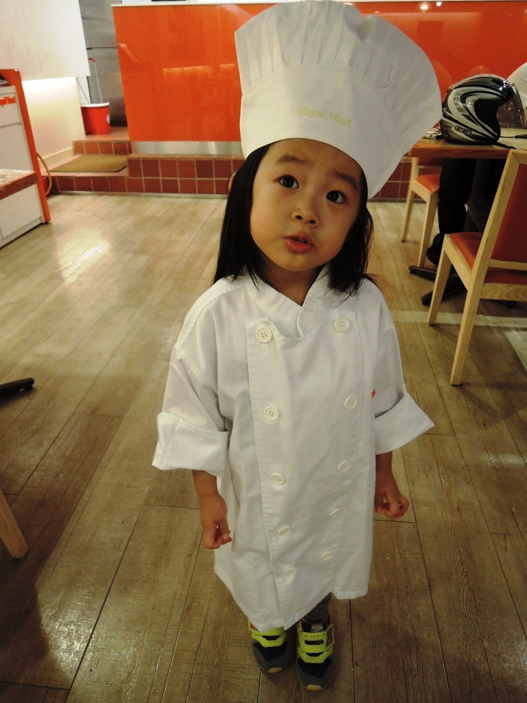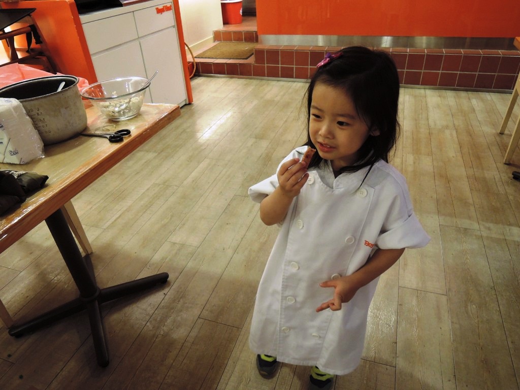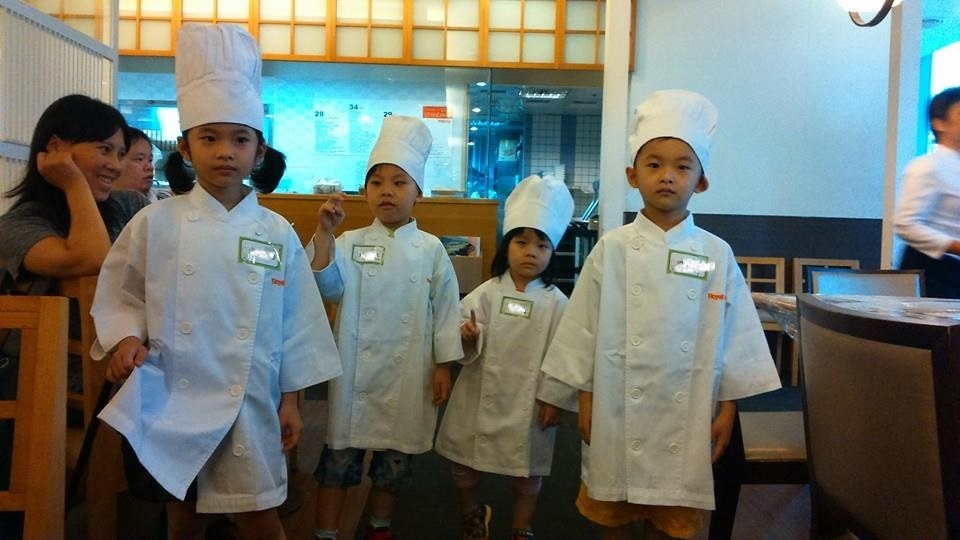 然後小朋友們要穿上廚師服和廚師帽...是不是有點可愛又帥氣XD...
