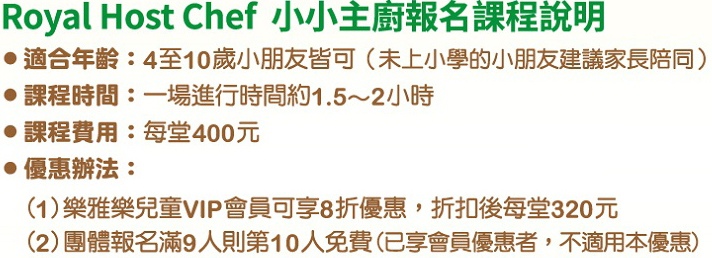 這是由樂雅樂餐廳所開的兒童烹飪課...大家可以點選這個網址=>http://www.royalhost.com.tw/event/kids/index.html