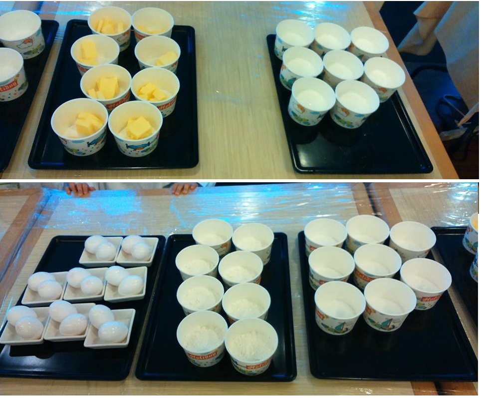 一到樂雅樂...大家都要先去洗手...工作人員們...也已經將材料都分好放在料理桌上...