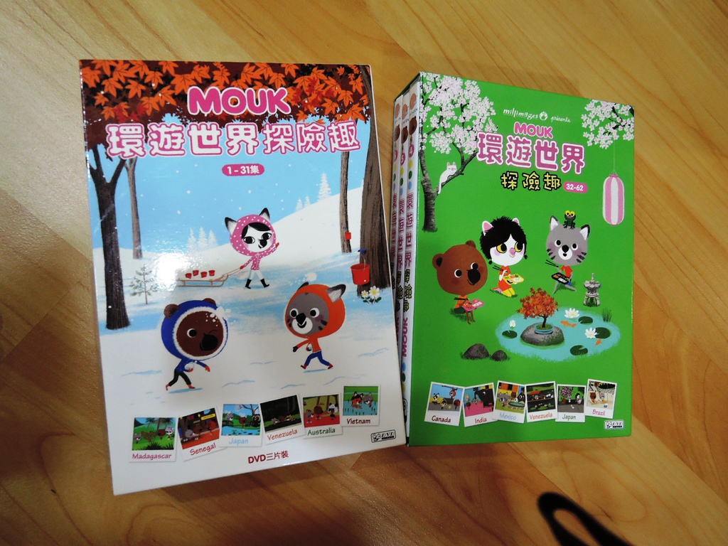 [MOUK環遊世界探險趣]的DVD...有中英文發音可以選擇...芸芸是看中文的啦...