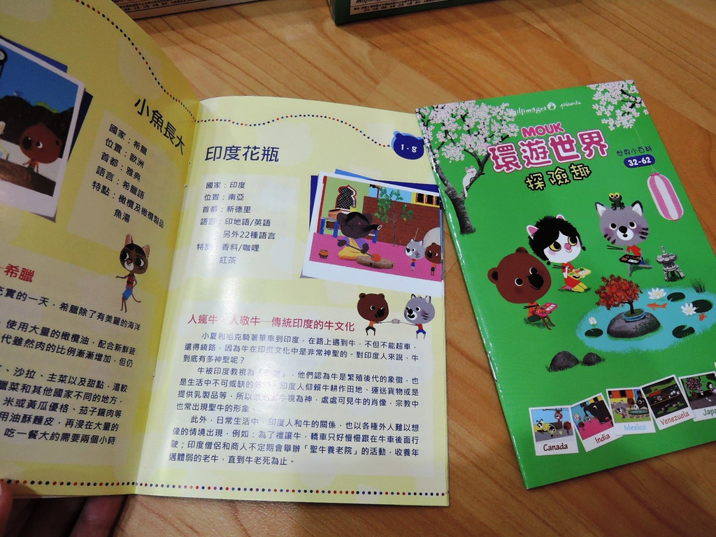 DVD裡面還有附贈[世界小百科導讀手冊]如下圖...有點像是給爸媽的書...裡面配合影片中的每一集國家,說明各國的文化...光是這些有趣的知識...就足以令人著迷...