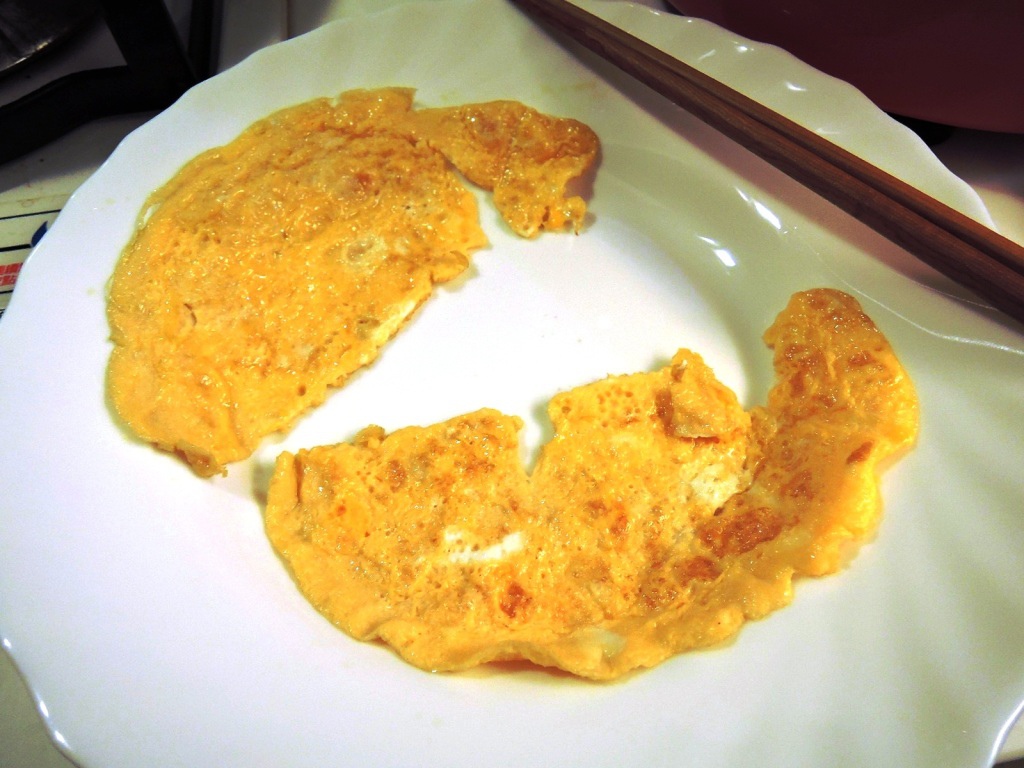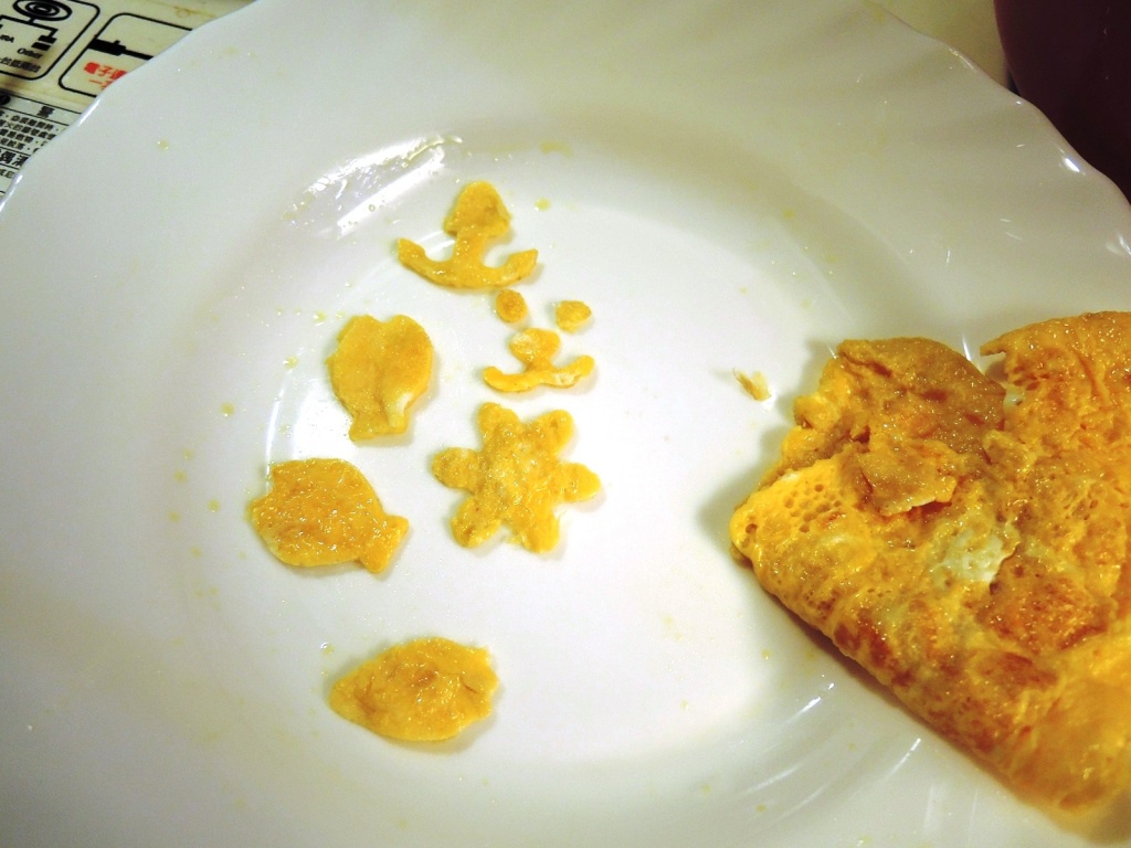 所以煮好咖哩之後...我先煎了一個蛋皮...要用來切割出表情或造型...