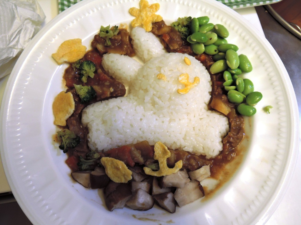 兔子咖哩飯完成囉...(唉呀...我的咖哩比較濃稠...)芸芸很愛吃毛豆...所以我另外加了一些在旁邊...