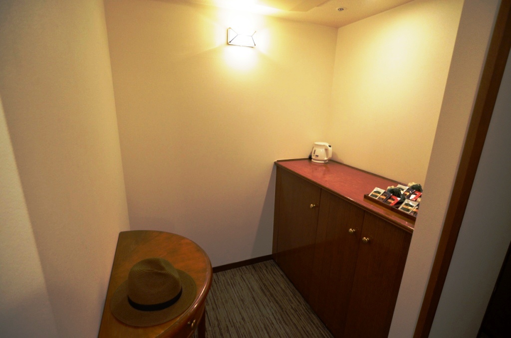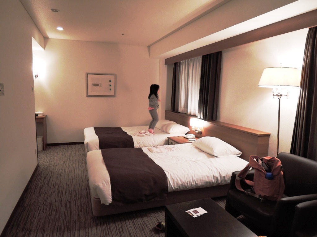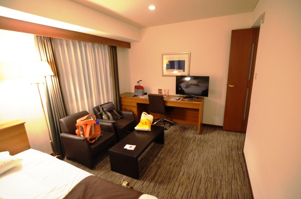 原本我們是訂標準雙人房,checkin時飯店服務人員問我們要不要加價升等,一天加日幣1000,可以多沙發、茶几、更衣間等等,
