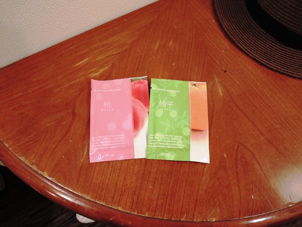 大廳有提供入浴劑,放在旁邊隨客人取用,我們就拿了兩包試試。