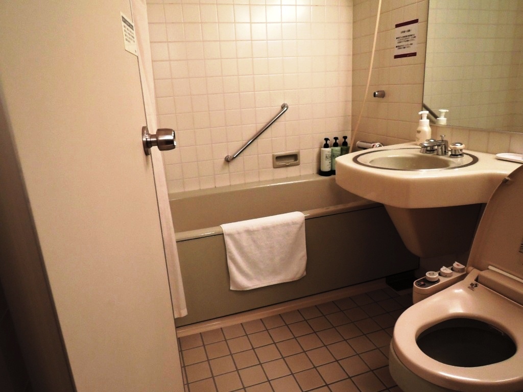 廁所大小一般般,看起來有貼磁磚,但其實依然是日本流行的組合浴室。